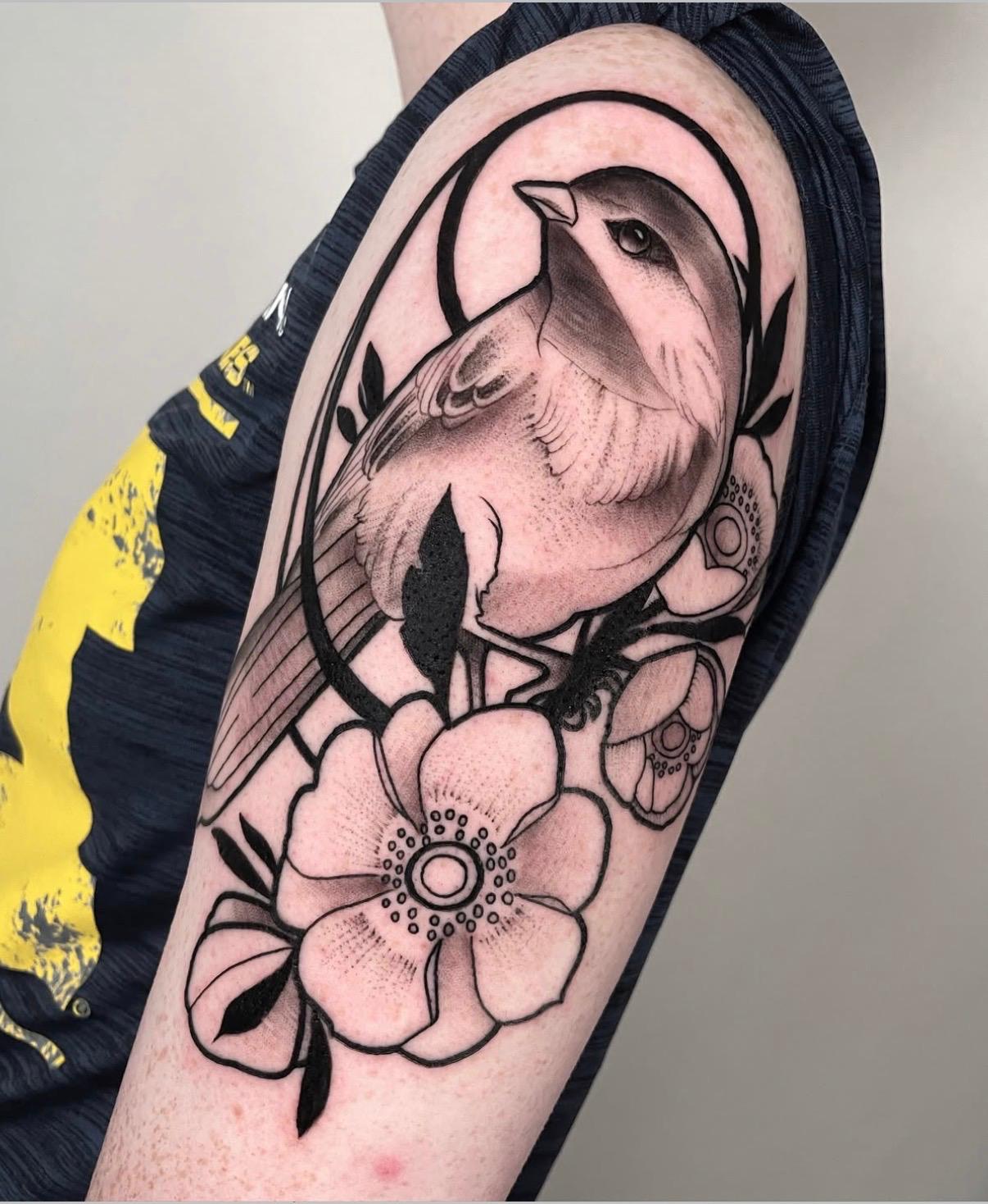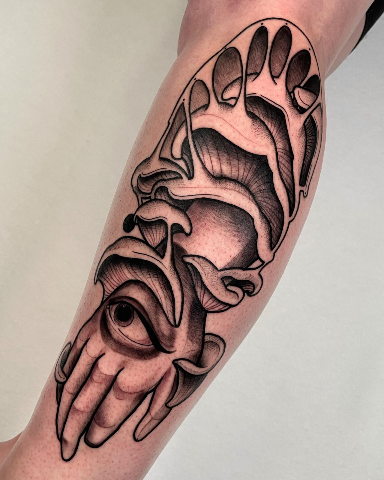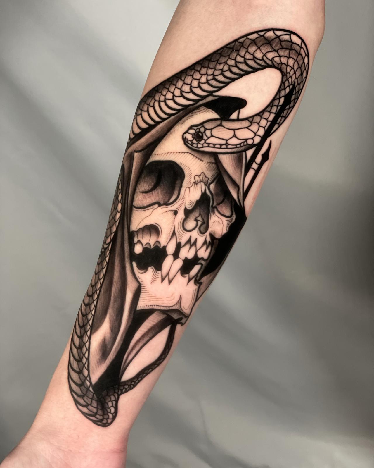 Mike Alan is seasoned artist and illustrator with a career spanning a decade and a half. Growing up with an ever growing interest in the arts he has brought his love of creation to tattooing with bold black and grey imagery that focuses on dynamic composition and heavy contrast. He crafts each tattoo with care and attention from scratch creating one of a kind designs his clients can wear with pride